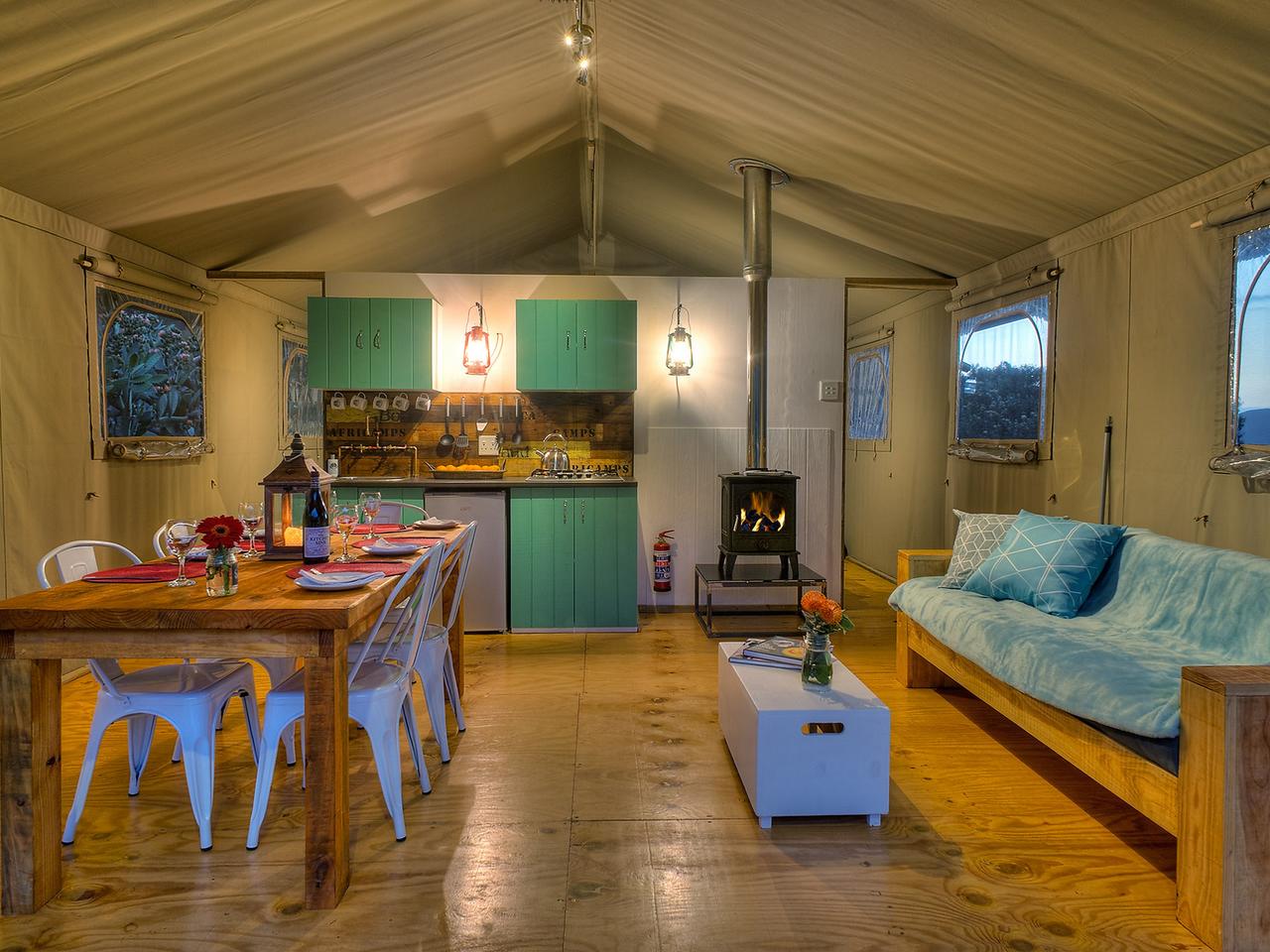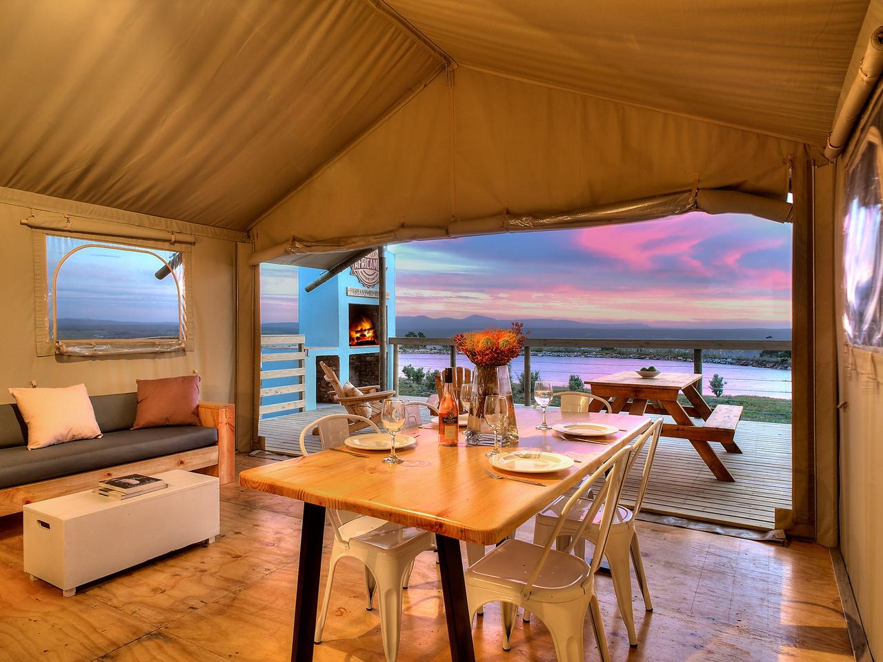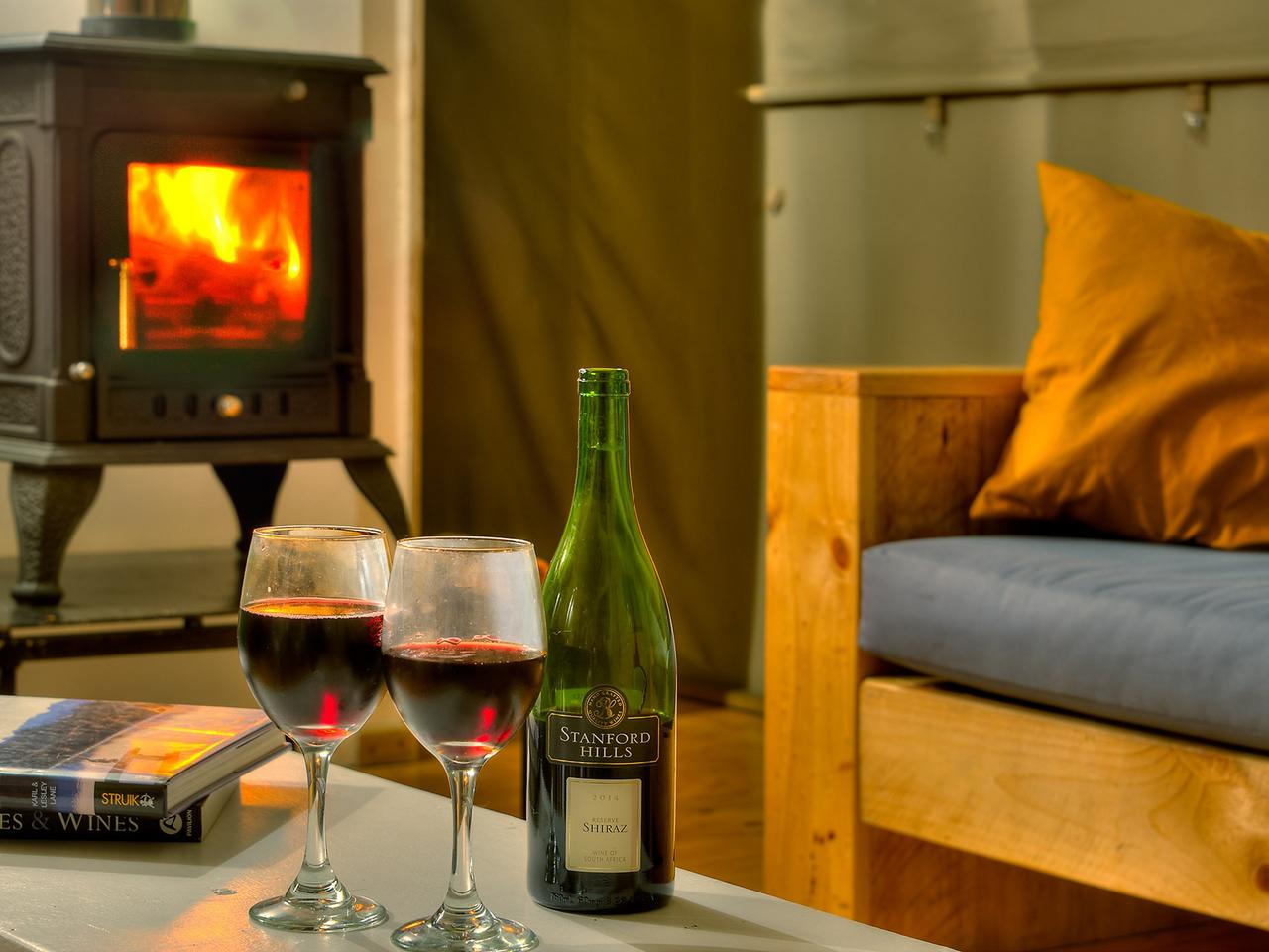 Geniet van heerlijke lokale gerechten en wijn bij AfriCamps in Stanford Hills. Dit kamp is gevestigd in een boetiekwijnboerderij in Stanford, een spannende slow food bestemming met chef-koks die een scala aan verse en lokaal geproduceerde gerechten serveren. We hebben 5 glamping tenten gelegen aan de voet van de Klein River Mountain range met uitzicht op een dam en de Stanford Valley. Dit fijnproevers genot ligt op slechts een kwartier rijden van Hermanus en kan vanuit Kaapstad in twee uur worden bereikt. Stanford Hills Estate wordt snel een van de populairste attracties van het gebied. Naast het aanbieden van proeverijen en verkopen van hun bekroonde assortiment aan wijnen, zijn er een verscheidenheid aan andere activiteiten en attracties. Het restaurant, The Tasting Room, ligt boven een dam met eindeloos uitzicht over de Stanford Valley. Het restaurant heeft een reputatie voor relaxte plezier, met de nadruk op verse en inventieve gerechten van een uitzonderlijk hoge standaard.