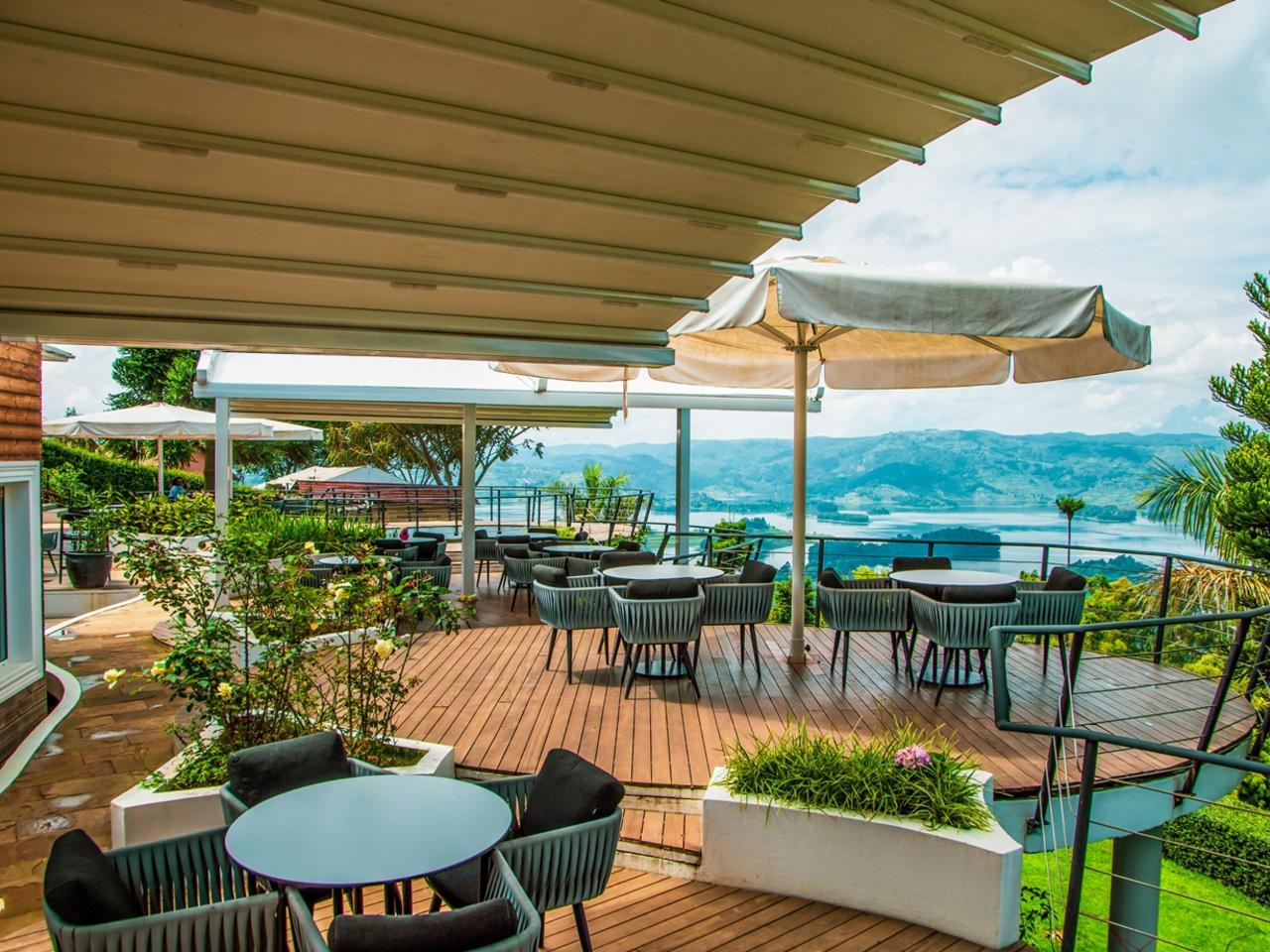 Hoog op een heuveltop, met uitzicht over het glinsterende Lake Bunyonyi en zijn 29 groene eilandjes, ligt Arcadia Lodge. Het uitzicht is adembenemend, op heldere dagen zie je zelfs de besneeuwde toppen van de Virunga-vulkanen aan de horizon.