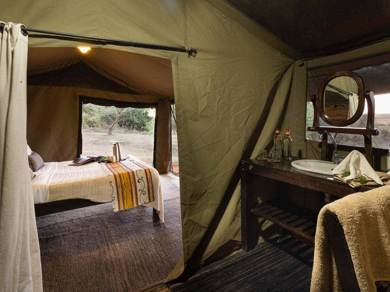 De intieme en ontspannen sfeer van het kamp zorgt voor een unieke safari-ervaring in een eersteklas natuurgebied. Het is de ideale plek om tot rust te komen, of u nu in de lounge een boek leest of vanuit het comfort van uw tent, waar u verschillende dieren kunt zien terwijl ze een drankje drinken uit de rivier.