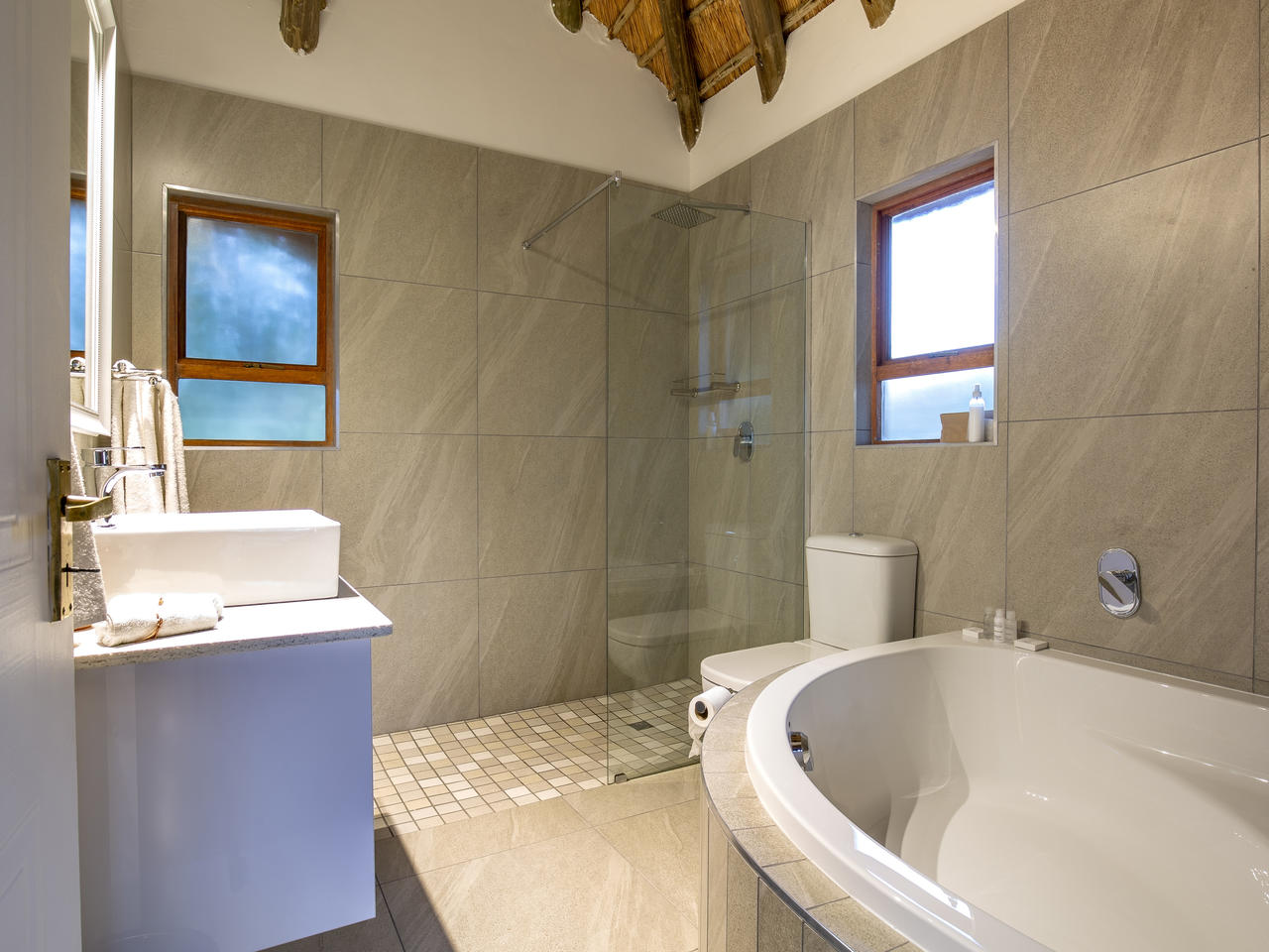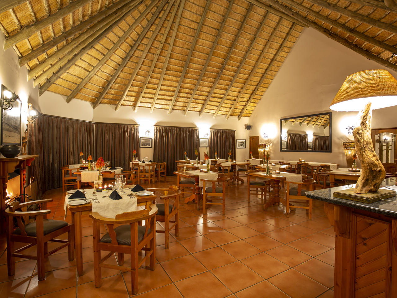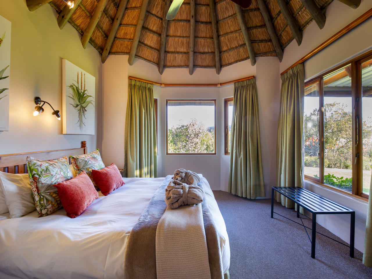 De 16 romantische suites (10 garden suites, 2 mountain suites en 4 family suites) sommigen met rieten dak, het uiterst vriendelijke personeel, de kleinschaligheid en de ligging zijn voor ons de reden om deze prachtige Lodge in ons portfolio op te nemen.Montusi ligt 360 km vanaf Johannesburg en 280 km van Durban verwijderd en dus een prima plek voor een stopover in de Drakensbergen.De suites, met 1 of 2 slaapkamers, zijn uiterst ruim en hebben elk een fantastisch uitzicht op Amfitheater. De slaapkamers van 16m2 hebben King Size bedden (dubbel op enkel), de badkamer heeft douche en/of bad en in het zitgedeelte van 16m2 vind je een openhaard, koelkast, thee- en koffiefaciliteiten en televisie. Parkeren is op eigen terrein naast de suites.Een prachtig rotszwembad, paardrijdmogelijkheden, wandelroutes, vismogelijkheden, tennis en ontspannende massages, zijn een aantal faciliteiten welke bij Montusi Mountain Lodge horen. In de nabije omgeving vindt u golfbanen. U kunt genieten van uw ontbijt en diner, in het ruime restaurant behorend bij hoofdgebouw.Kinderen van alle leeftijden zijn welkom, wij. Ouders dienen erop toe te zien dat de rust die uitgaat van deze prachtige lodge, wordt gewaarborgd.
