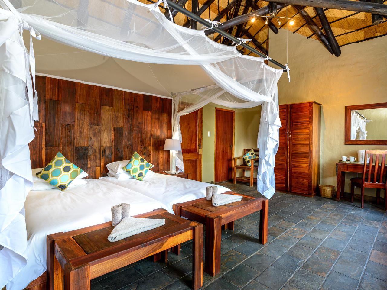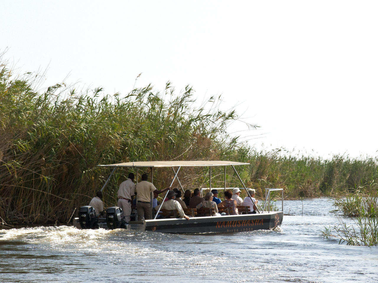In Namushasha River Lodge combineert u het beste van Afrika: bush, rivier en cultuur. Geniet van de geluiden van knorrende nijlpaarden, tjilpende vogels, kwakende kikkers, trompetterende olifanten en in de verte een brullende leeuw. De indrukwekkende receptie in Afrikaanse stijl zet al meteen de toon voor een heerlijk verblijf. In het souvenirwinkeltje heeft u een ruime keuze aan leuke souvenirs en interessante boeken over Namibië en de Zambezi regio. In de omgeving van de receptie kunt u gratis gebruik maken van WiFi.