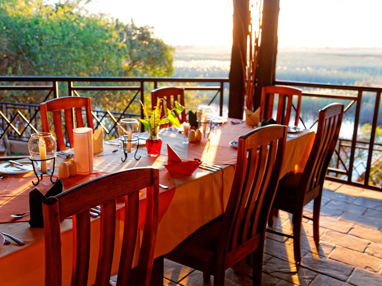 Eenmaal terug in Namushasha River Lodge geniet u op het terras aan de rivier of aan de rand van het zwembad van de laatste zonnestralen, voordat de zon in een roodgouden bal verandert en achter de horizon verdwijnt. Bestel in de bar uw aperitief, voordat u aan tafel gaat in het restaurant of, bij goede weersomstandigheden, buiten op het terras. Door de halfopen structuur van het restaurant, heeft u ook van binnenuit zicht op de rivier.