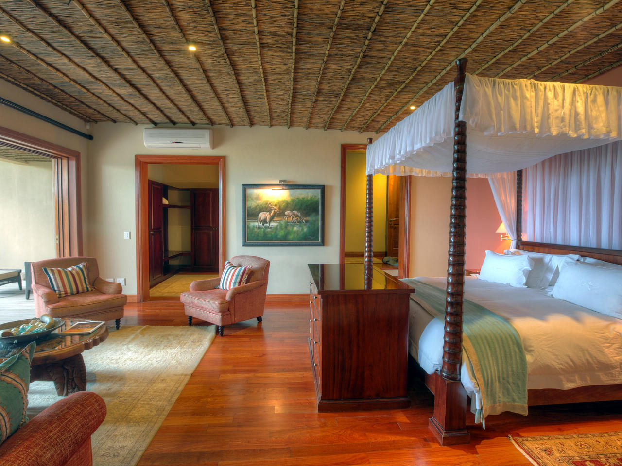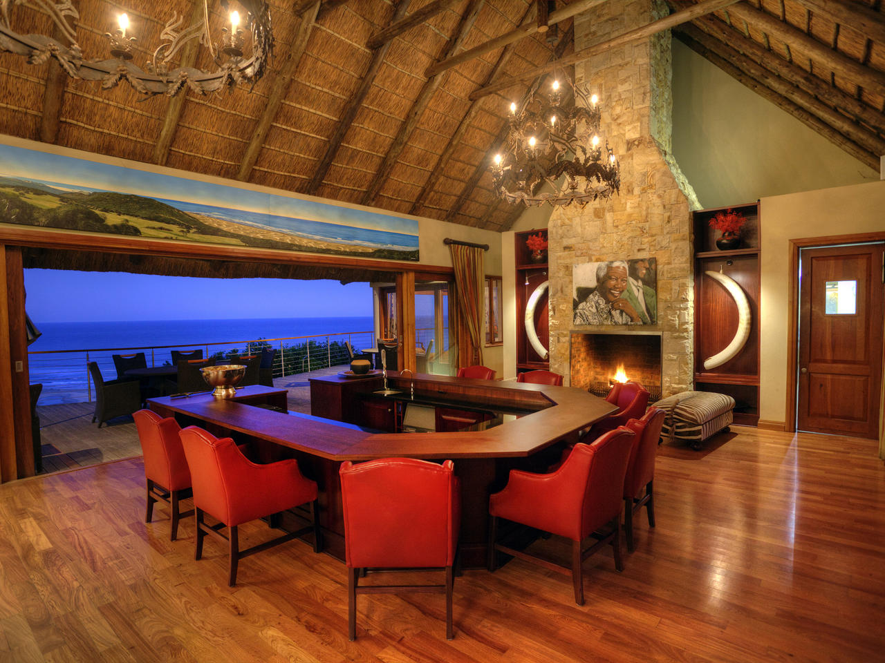 Oceana biedt vele bijzondere hoekjes en uitkijkjes. De lounge en de bibliotheek zijn perfecte plaatsen om de ongedwongen te genieten van de sfeer van deze lodge. In de centrale bar nipt u van een glas wijn voor de open haard, of geniet u van een cocktail terwijl u uitkijkt over het reservaat. Altijd op zoek naar de dieren die uit de waterpoel drinken of voor de lodge aan het grazen zijn. Vanuit hier loopt u naar de mooie binnenplaats en het zwembad in de vorm van het Afrikaanse continent.