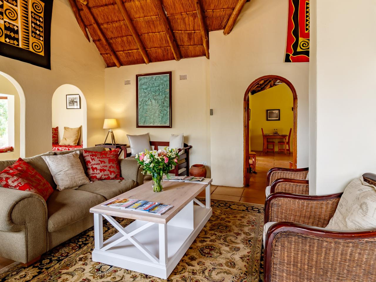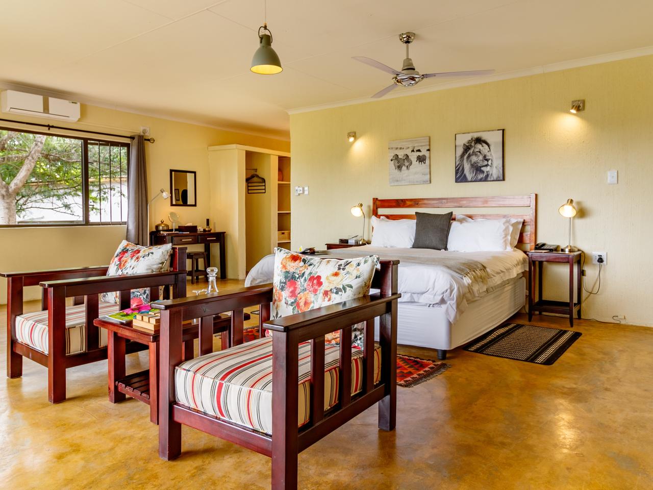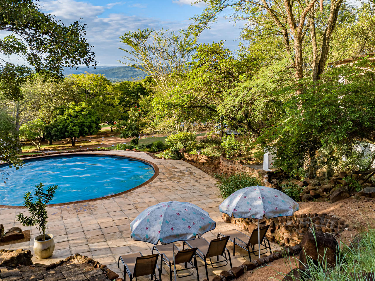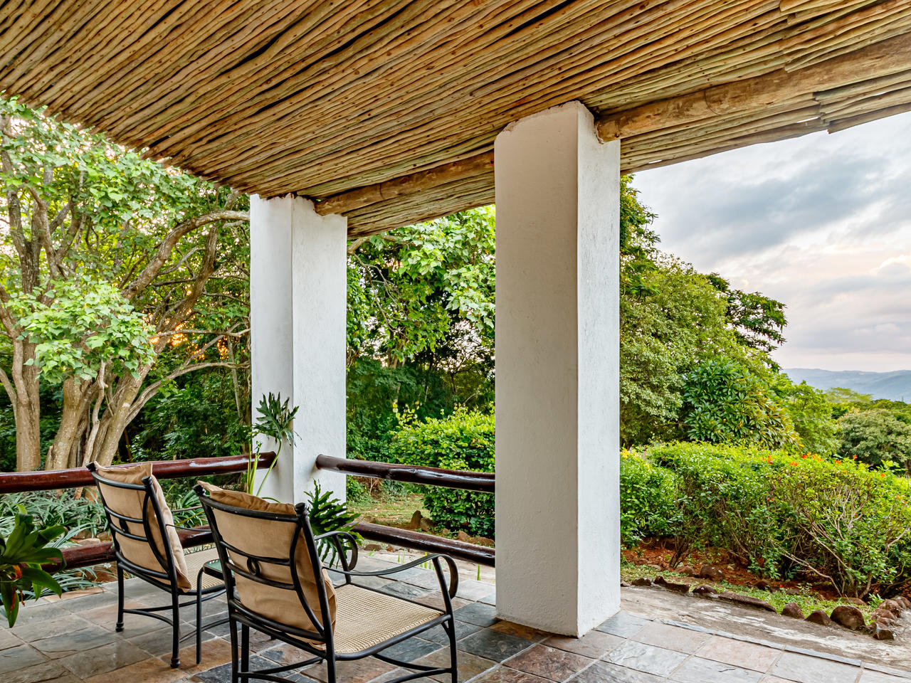De 20 individueel ingerichte kamers worden omringd door 10 hectare landgoed met veel bomen, bloemen en talrijke vogelsoorten. De superior en de met rietbedekte herberg, liggen in de schaduw van de prachtige bomen en hebben adembenemend uitzicht over de vallei. Elke kamer heeft een eigen ingang en veranda, een volledig ingerichte badkamer. De garden suites liggen iets verder van het hoofdgebouw, net als de twee hillside suites, die samen een eigen zwembadje delen. Zowel de garden suite als de hillside suites, hebben naast een een badkamer binnen, elke een buitendouche.