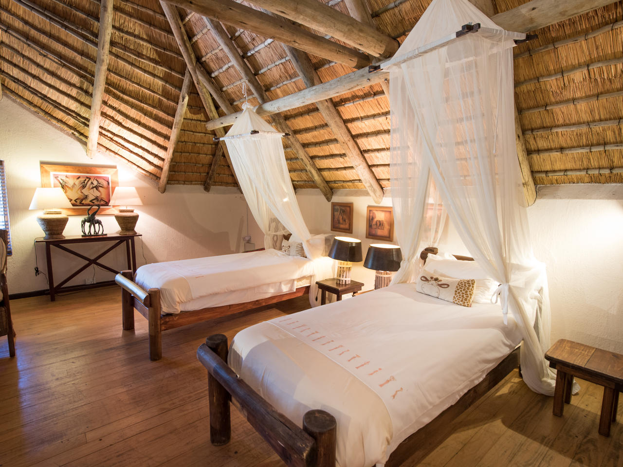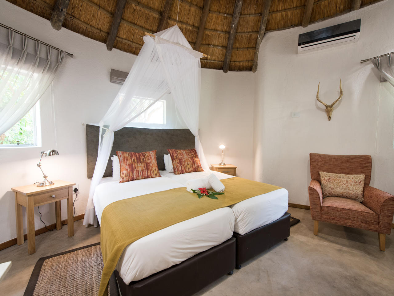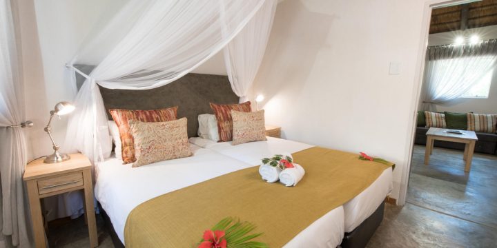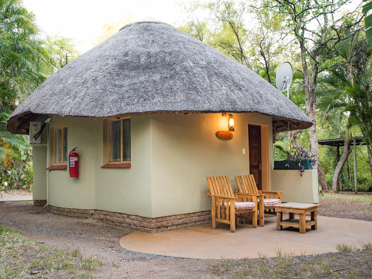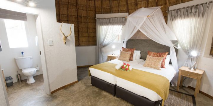 Bestaat uit tweepersoons- en twee eenpersoonsbedden, eigen badkamer met douche, toilet, koelkast, koffie- en theefaciliteiten, wekker, haardroger, airconditioning, eigen veranda en een eigen parkeerplaats. De rondavels liggen te midden van tropische tuinen, waarvan sommige met uitzicht op de dam.