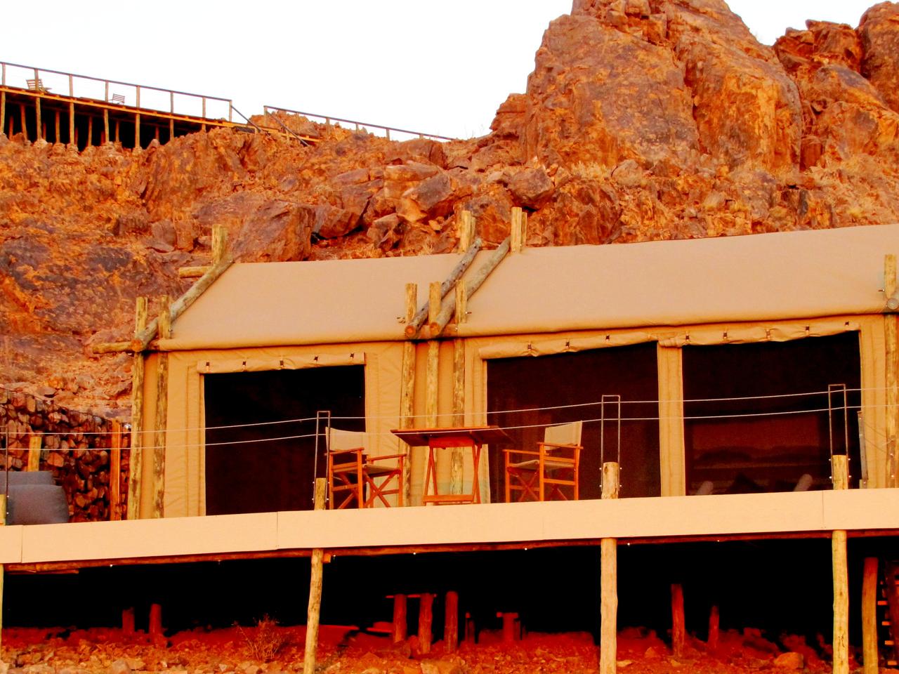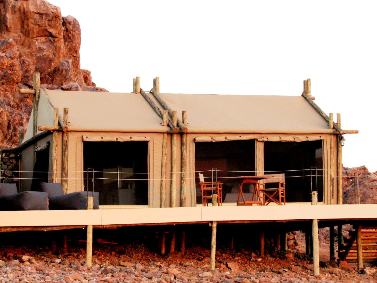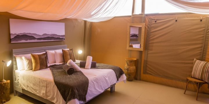 The Elegant Desert Eco Camp is een nieuwe toevoeging aan The Elegant Desert Lodge en is geschikt voor reizigers die gesteld zijn op kleinschalige accommodaties, rust en privacy, maar die niet veel geven om luxe. The Elegant Desert Eco Camp is een eco-vriendelijke accommodatie met slechts 10 grote canvastenten die voorzien zijn van een ruime veranda met zitje, minibar, toilet en buitendouche. Niet luxe, maar keurig verzorgd. Het camp draait 24 uur per dag op zonne-energie en elektriciteit en warm water is dus altijd voorhanden. Centraal in het Eco Camp ligt een zwembad, maar voor het restaurant moet u in de Lodge zijn die 7 km van het Camp is gelegen. Het Camp ligt op 45 km van de Sesriem Gate, de ingang naar het Namib-Naukluft Park, en wordt omringd door de Tsarispas en de eindeloze grasvlaktes van de Namib. Een heerlijke plek om even helemaal tot rust te komen en van de natuur te genieten. Over de bijbehorende camping is helaas (nog) geen informatie beschikbaar.