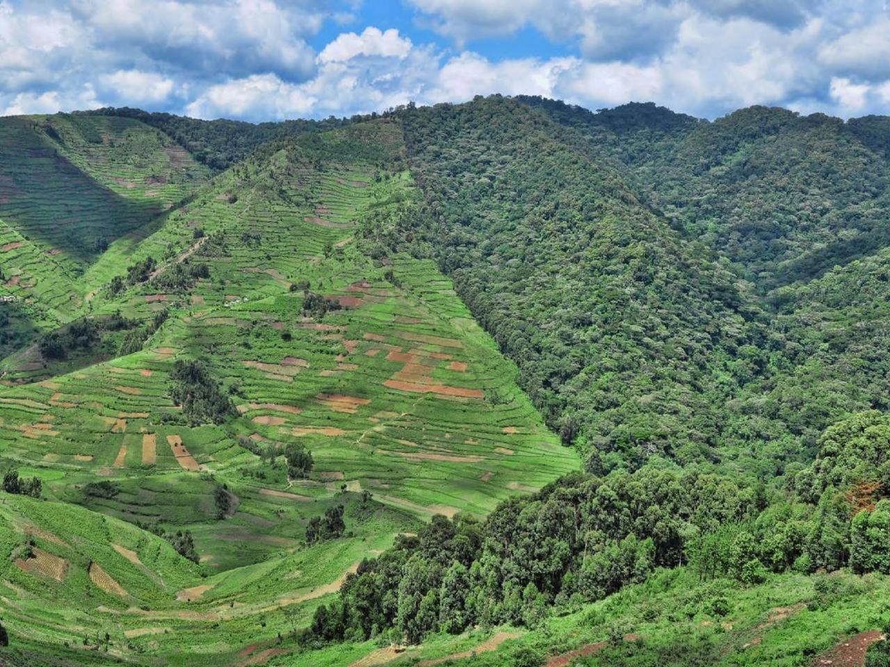 Muzabajiro Loop Trail klimt naar de top van Rukubira Hill voor een adembenemend uitzicht op het regenwoud van Bwindi, de Albertine Rift Valley en de Virunga-vulkanen in Congo.