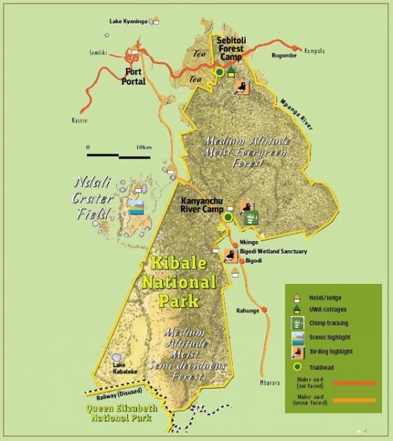 In het Kibale National Park leeft de grootste populatie chimpansees van Oeganda. Dit park is grotendeels bebost en heeft een oppervlakte van 795 km2. In Kibale Forest National park leven naast chimpansees ook veel andere primatensoorten, zoals de colobus aap en verschillende mangoesten. In het park varieert de hoogte, hierdoor zijn verschillende soorten habitat ontstaan, variërend van tropisch bos, tot savanne. Het deel met savanne bevindt zich op de bodem van de riftvallei ofwel Grote Slenk. Kibale National Park ligt ten oosten van het Rwenzori-gebergte, het biedt een landschap bezaaid met vulkanische kratermeren en bekleed met theeplantages en tropisch bos.